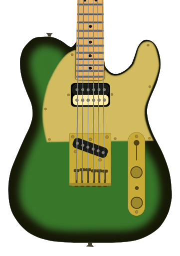 The green sunburst finish also highlights a figured maple wood grain. This is unusual for a Telecaster which typically have either alder or ash bodies. It is also likely to be a maple ‘top’, where a roughly 10mm piece is glued to an underlying tonewood. According to Marr, the guitar ‘weighs a ton’[1] which would suggest something like mahogany. Interestingly, you can check out the actual Giffin guitars wood pile to get a good overview of the different types of tops used by luthiers.