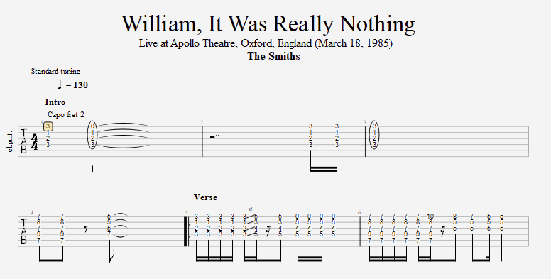 All the guitar parts in this song transcribed from a gig at Apollo Theatre, Oxford, England (March 18, 1985) broadcast by the BBC. You can listen to the performance here.