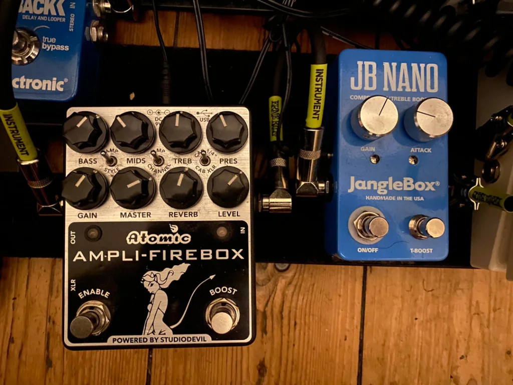 For the guitar audio the signal chain is my Rickenbacker 330 JG into a JB Nano compressor then a Ampli-Firebox (Clean Deluxe Reverb simulation). The below pic shows the settings I’m using. From that I go into two channels on my DAW with the guitar panned left and right.
