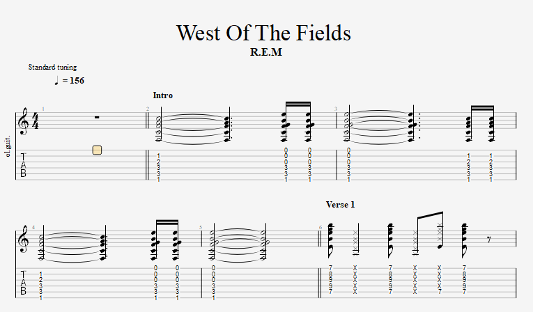 The guitar is in standard tuning and as per usual I’ve approached this one based upon the way it was played live. I mainly used this version to transcribe the guitar.